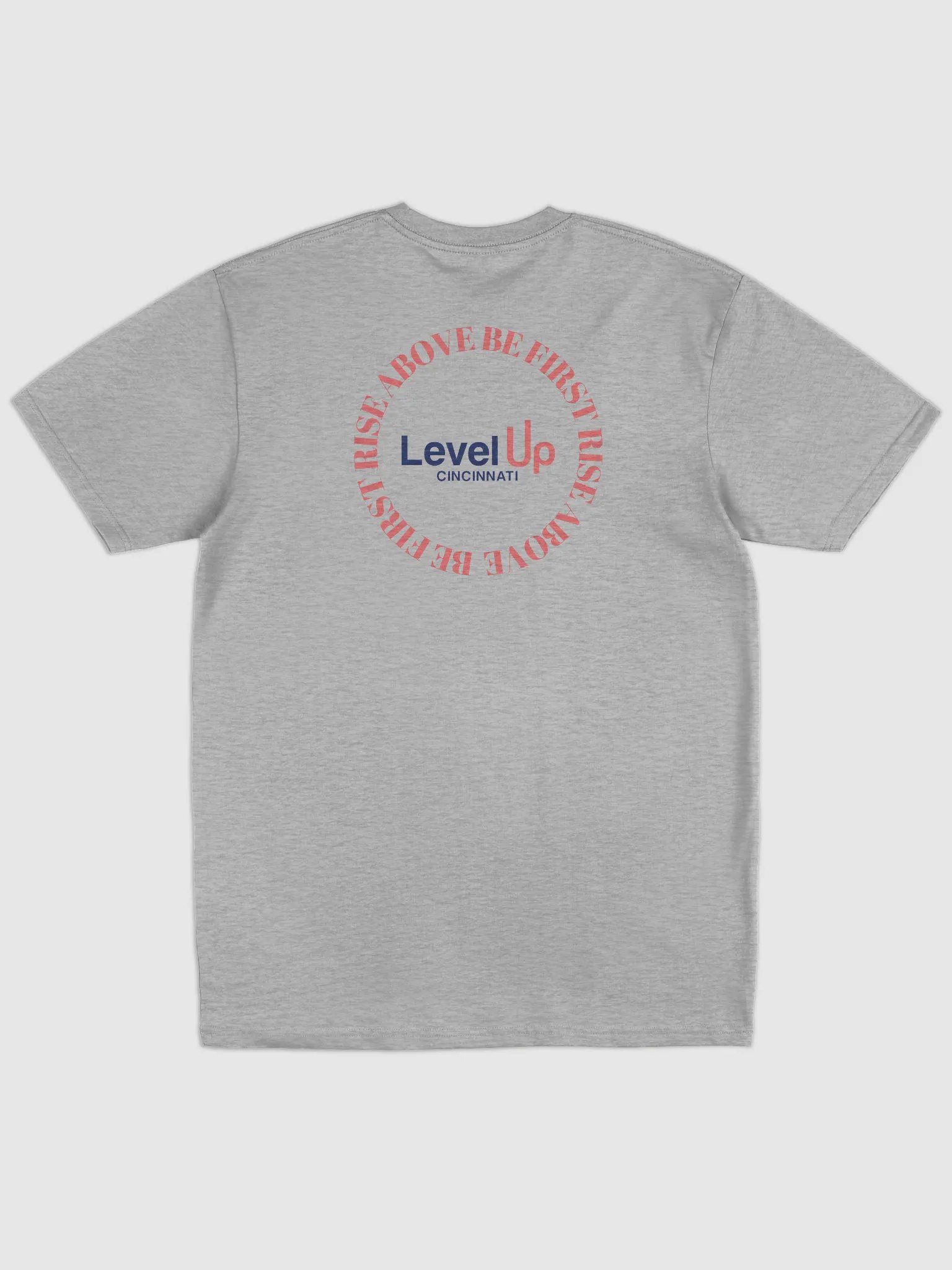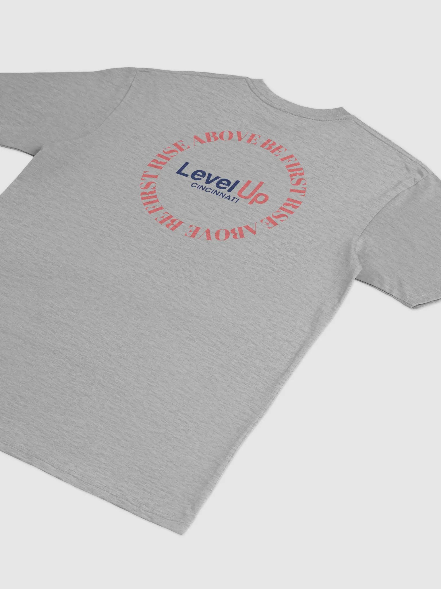 Elevate your style and spirit with the "Be First and Rise Above, Aim Higher" T-shirt from Level Up Cincinnati. This shirt isn't just a piece of clothing; it's a statement of ambition, perseverance, and excellence.